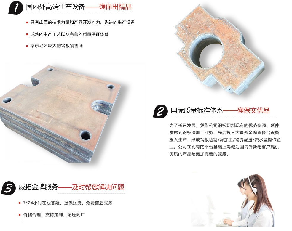 無(wú)錫威拓鋼鐵有限公司是一家鋼板切割企業(yè),公司專(zhuān)業(yè)從事鋼板切割,鋼板零割,鋼板下料,鋼板數(shù)控切割,特厚鋼板切割及加工服務(wù),常年備中厚板庫(kù)存,提供20-500mm厚度鋼板切割業(yè)務(wù),配備6米大型數(shù)控切割設(shè)備數(shù)臺(tái),半自動(dòng)切割機(jī)數(shù)臺(tái),另有大小行車(chē)及鏟車(chē)。提供特厚特寬鋼板切割:Q235A、Q235B、Q235C普板、低合金板切割:Q345B、C/D、Q460D、Q690D、容器板切割:Q245RQ345R16Mndr等特殊材質(zhì)。無(wú)錫威拓鋼鐵有限公司可以加工:各種板材切割件:數(shù)控切割軸承座、數(shù)控加工法蘭盤(pán)、牌坊件、預(yù)埋件、異形件、仿形件、構(gòu)件、方塊、長(zhǎng)條等各種圖形加工。公司憑著與鋼廠(chǎng)的緊密合作及新老朋友的大力支持,公司業(yè)務(wù)得到迅速的發(fā)展。如今已成為集銷(xiāo)售、鋼板零割、鋼板切割加工,物流運(yùn)輸為一體的經(jīng)營(yíng)體系。
